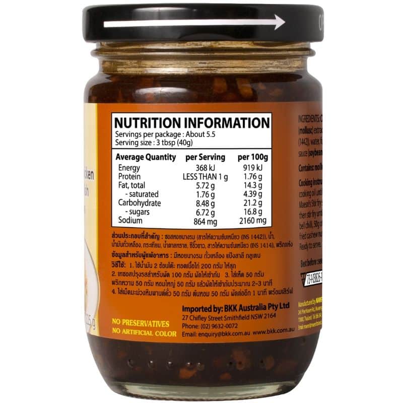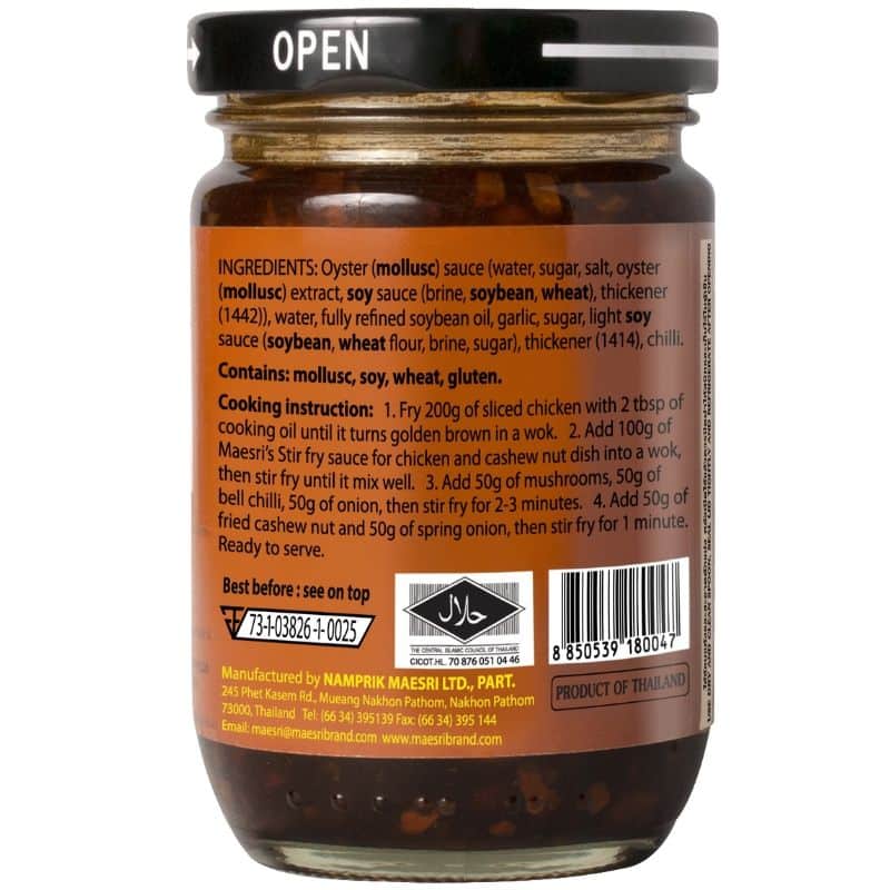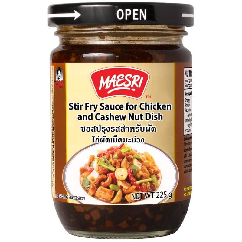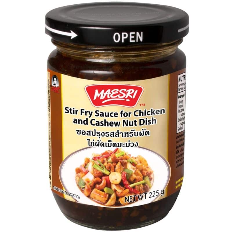 Indulge in the popular Thai dish, Stir-Fried Chicken with Cashew Nut Sauce, widely ordered in Thai restaurants across Australia. This Chinese-inspired Thai dish is celebrated for its mild taste, complemented by a lightly sweet brown sauce and roasted cashew nuts, perfectly paired with chicken and capsicum. A favourite among both kids and adults, the Maesri Cashew Nut Stir-Fry Sauce eliminates the hassle, making stir-frying a breeze. This ready-to-use sauce only requires your choice of meat and vegetables to recreate this culinary delight at home. Elevate your cooking experience with the convenience and authentic flavours of Maesri’s Cashew Stir-Fry Sauce.
